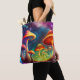 This colorful tote bag features an illustration of various mushrooms growing in the wild.