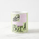 A delightfully illustrated bird graces this soft pink and green mug. The epitome of serene!