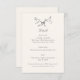 The card features an off white background, offering a serene and classic canvas that enhances the minimalist design. The elegant charcoal gray font, inspired by vintage calligraphy, adds a touch of sophistication and warmth. This carefully selected typography complements the artistic elements, ensuring your wedding details are presented with style and clarity.
