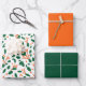 Illustrated Christmas Holly Red & Green Wrapping Paper Sheets Set of 3