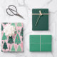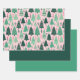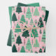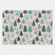 Illustrated Christmas Tree Green & Pink Wrapping Paper Sheets