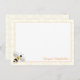 An animal-themed note card that features a flying bee illustration on the front, along with plenty of space for writing. The front includes a customizable name. The back shows a hexagon pattern. Simply customize the name add these note cards to your cart, and enjoy writing your personalized notes.