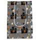 Illustrated Halloween Pattern with gray, black Medium Gift Bag