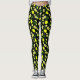 Pretty hand drawn all-over print leggings with summery yellow lemons, lemon slices and green leaves on black pattern