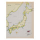 Illustrated map of Japan in a beautiful vintage detailed style, decorated with a red bi plane.