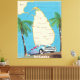 Illustrated map of Sri Lanka (plus surrounding islands) in a beautiful vintage detailed style, decorated with a old autombile.