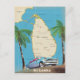 Illustrated map of Sri Lanka (plus surrounding islands) in a beautiful vintage detailed style, decorated with a old autombile.