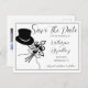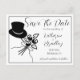 With a photo space on back, this black & white typography design features features a formal top hat & bridal rose bouquet illustration.