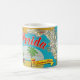 Sensational vintage map postcard of the State of Florida repurposed on a coffee mug. wonderfully illustrated with attractions and cities.