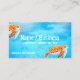 Illustrated sea turtles and blue water background, business card template. Bright blue color with three lines of text. A simple card to advertise a business, profession, or service with one line of larger text and two smaller, in white printing. One, or two lines can be used for the name / business area.
