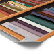 Illustrated design of a tall bookshelf with a variety of colorful books