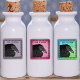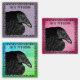 These waterproof labels have a black illustration of the head and wing of a crow inside an ornate black Gothic frame on various marbled colour backgrounds of purple, pink, and blue green. Customise your name or text on all rows with the template.