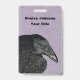 This name or identification badge is a pretty light purple with an illustration of the head and wing of a black crow. Customize your name and information with the templates.