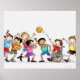 Illustration of a group of children including a poster