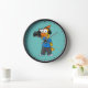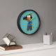 The size of the clock is dramatic and the abstract alcohol ink design is soothing and intricate at the same time. I chose the black frame that adds pop to the blue and gold design. The gold printing would be better in a slightly darker or larger font. I love it and I’m looking for just the right place in ny new apartment. I would recommend this clock for a personal gift or a present. I feel that the quality is excellent for the money! I’m a bit of a clock nut so I’m pretty particular about my purchases. The clock is larger in diameter than many if the clocks I have, so it stands out very well. I think a slightly darker printing color and a moderately larger size would best suit a professional decor or add more impact in a work place item.
