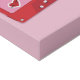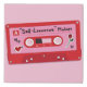 Illustration of a red plastic audio cassette tape, with a pink label that reads "Self-love" mixtape, heart and flower stickers on it. Old technology, realistic retro design, art image drawing.