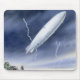 Illustration of US Navy airship being struck by lightning during storm as man looks up from ground next to car. Copyright: Peter Dennis