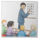 Illustration of teacher pointing at simple ceramic tile