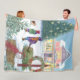 Illustration with Kids and Snow Cover House Fleece Blanket