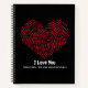 Ilove red fingerprint heart red Spiral Notebook
