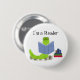 A cool button for young readers, a bookworm busy reading with a stack of books beside him. Customize as desired.