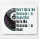 Eight Ball Don’t Hate Me Because I'm Beautiful, Hate Me Because I'm Good tshirts, gifts, and accessories created by ITD Sports Center feature our original artwork of half a black and white 8 ball on the left side with the words in pool table felt green and black on the right, Don’t Hate Me Because I’m Beautiful, Hate Me Because I’m Good. Our fun sports gifts and accessories are great for 8-ball lovers, pool players, pool sharks, and sports lovers of all ages. It’s all fun and games at Imagine That! Design Sport Center. Enjoy shopping with us!