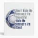 Futbal Art Don’t Hate Me Because I’m Good t-shirts, gifts, and accessories created by ITD Sports Center feature our original artwork of half a blue and white futbal ball on the left side with the words in gray and blue on the right, Don’t Hate Me Because I’m Beautiful, Hate Me Because I’m Good. Our fun and competitive sporting goods are great gifts for soccer lovers, fuybal lovers, soccer players, soccer stars, soccer coaches, athletes, and sports lovers of all ages. It’s all fun and games at Imagine That! Design Sports Center!
