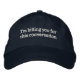 The design was easy to do with a number of options both the hat style, color and so forth. These aren't some printed letters, these are the real deal stitching. The two hats arrived quickly. I've used Zazzle in the past for shirts a number of times and this is the first time for a hat. Zazzle is absolutes the best in every respect; customer service, product selection and results. The embroidery was just right. My artwork was turned into a professional look thanks to Zazzle.