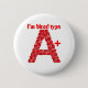 I'm blood type A positive Pinback Button