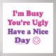 I'm Busy You're Ugly Have a Nice Day. Funny and sarcastic saying / quote text / font in purple and pink.