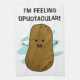 Cute, funny potato pun I'm Feeling Spudtacular in black text at the top of the design. Below is a happy brown potato with sticks for arms and tiny black dots for eyes and a big happy smile.