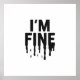 A powerful and ironic graphic design featuring the common phrase "I'M FINE" in a distressed, blocky typeface. The word "FINE" is shown melting or dripping, symbolizing that the feeling is unstable, unraveling, or a lie used to mask pain, anxiety, or deep sadness. Perfect for mental health awareness, emotional honesty, and raw expression.