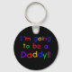 Buttons, stickers, and keychains for the future dad with kid style primary colors text that reads 'I'm going to be a Daddy!!".