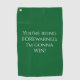 Golfers will love this funny golf towel! Quote text is "You're being FOREwarned, I'm gonna win!" in white on a green towel, but you can change the colors with Zazzle's customize feature if you'd like.