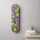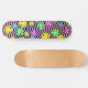 cute multicolored smiling emoji faces on wavy patterned skateboard deck