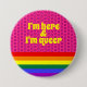 I'm Here and I'm Queer LGBT Rainbow Flag Button