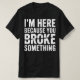 I'm Here Because You Broke Something. Funny design is for technicians, handymen, or anyone with a knack for fixing things.