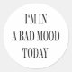 I'm In A Bad Mood Today Classic Round Sticker