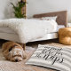 LOVE, love, LOVE this doggy pillow/bed. I purchased this dog bed a few years ago, in a different design, so I know it is a quality dog bed. The cover zips off for easy laundering and it doesn't shrink or pill after multiple machine washings. I use it at the end of the chaise section of my sofa as a bed for my dog and to help keep the sofa clean where she lays. I uploaded this photo design with her name and a picture of her sleeping on another pillow on our bed, with waves added in because I just know she's dreaming of being on the beach. When I received this new one, I replaced the old one on the sofa and Sara immediately laid down on it and knew it was for her. If you have a larger dog (Sara is about 25lbs) you'll want to order the larger size. Zazzle's printing and colors are always perfect. I'm a photographer, and I know how I expect the colors to come out, and they always do with Zazzle.