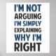 I'm not arguing...I'm simply explaining why I'm right! Perfect for those occasions when your rational explanation is being misconstrued as argumentative. Which is probably all the time.