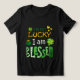 I'm Not Lucky I Am Blessed St Patrick's Day Green T-shirt features the modern text " I'm not lucky I am Blessed" in fun script accented with a pot of gold, green shamrocks and golden love hearts. Perfect for St. Patrick's Day parties and celebrations. Designed by ©Evco Holidays www.zazzle.com/store/evcoholidays