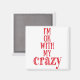 NewParkLane - Square Magnet with funny quote 'I'm ok with my crazy', in modern handwritten typography.