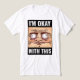 Unleash your inner chaos with this hilarious and slightly unhinged meme-style shirt! Featuring the phrase **"I'M OKAY WITH THIS"** above and below a cartoonishly wild-eyed face, this shirt is perfect for anyone who's dealing with life one awkward moment at a time.