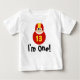 I'm One! This cute birthday cartoon football player looks great with his red jersey and helmet on this one piece white infant tshirt for the birthday boy. Add a name to personalize the design.