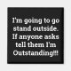 I'm going to go stand outside. If anyone askstell that I'm Outstanding!!!