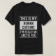 My 11 yo wore adult XL (5’7” 165#). The 8yo is small framed. She wore adult small and tied it in the back. Grandma wore adult large with long sleeve shirt underneath. Tall girl adult medium. Dark haired male adult large. Good quality dark Heather gray, Gildan brand shirt. -it was next up from basic choice and cost about $20 per shirt. Not too thick or thin. Washed and dried well, no major shrinkage. Not see-through. Can wear a bra under it fine. Screen print is just as shown and well done, front and back.