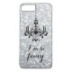 This is a fun and flirty iPhone 7 case with a sparkly silver background, accented with a chandelier and the cute saying, I'm so Fancy. Note: no glitter or sequins are used in making this case, the sparkly background is a photo illustration.