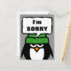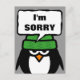 I'm sorry message postcard | funny penguin cartoon. Cute animal bird design with speech bubble. Comical cards for apology.