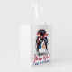 This patriotic grocery bag features American girl with messy bun and text "I'm Still A Trump Girl I Make No Apologies". Perfect for showing your support for your favorite candidate.