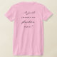 My overall review is that the T-shirt is nice, it fits true to size however the font is significantly smaller than advertised and you can't read it. The printing is unreadable and there is a strain to read it. It does not look like the advertised product. Maybe the shirt color is darker or a larger more visible font should have been used. Photos with and without flash and font is barely legible.